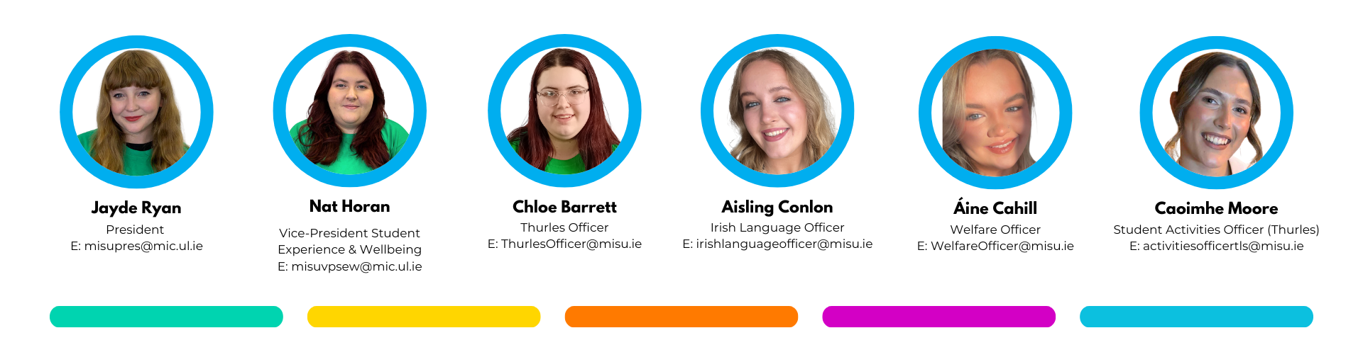 - Áine is focused on the general issues of accommodation, safety, and overall wellbeing for students and along with the Full-Time Officers , organises campaigns as and when appropriate.